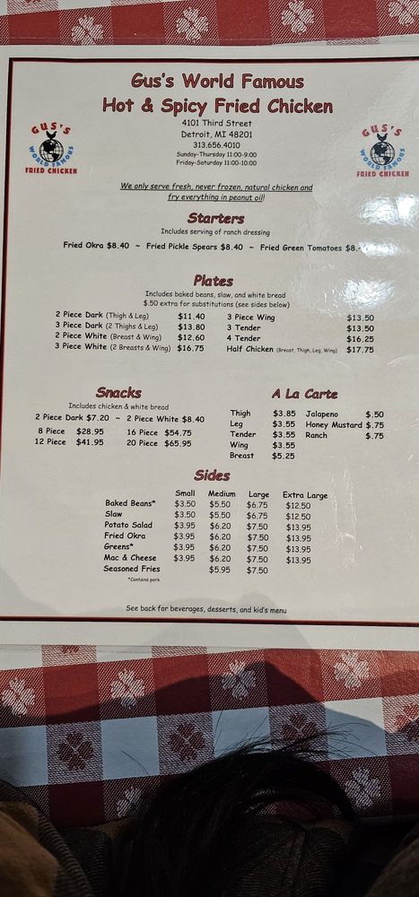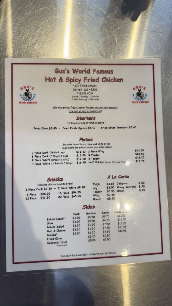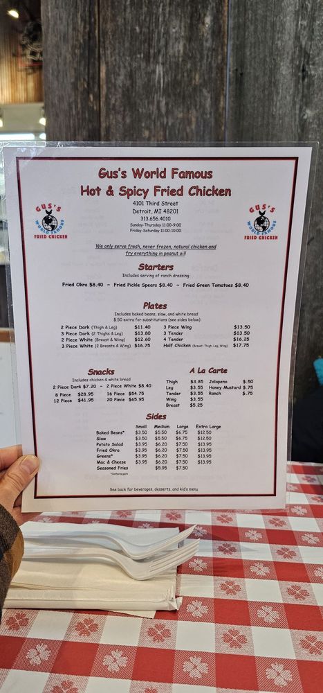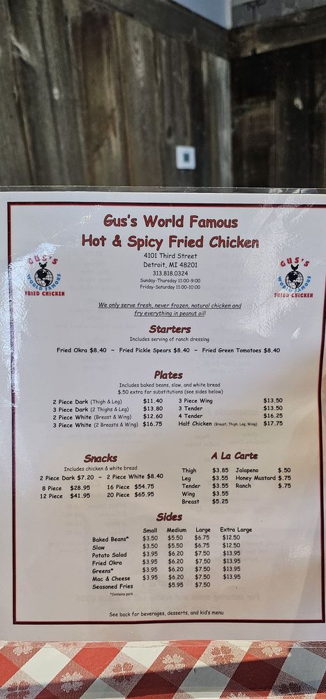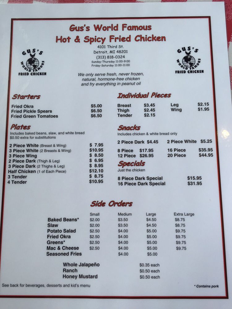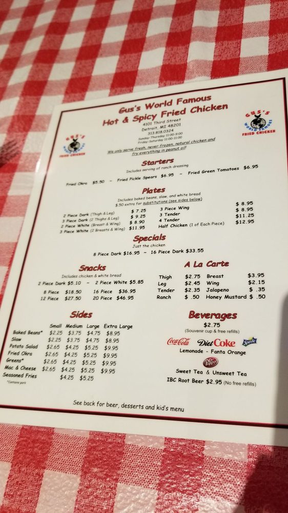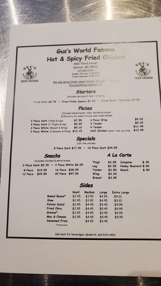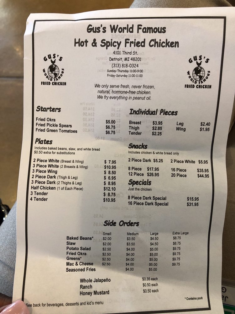 Gus's World Famous Fried Chicken Detroit Menu (Update 2025)