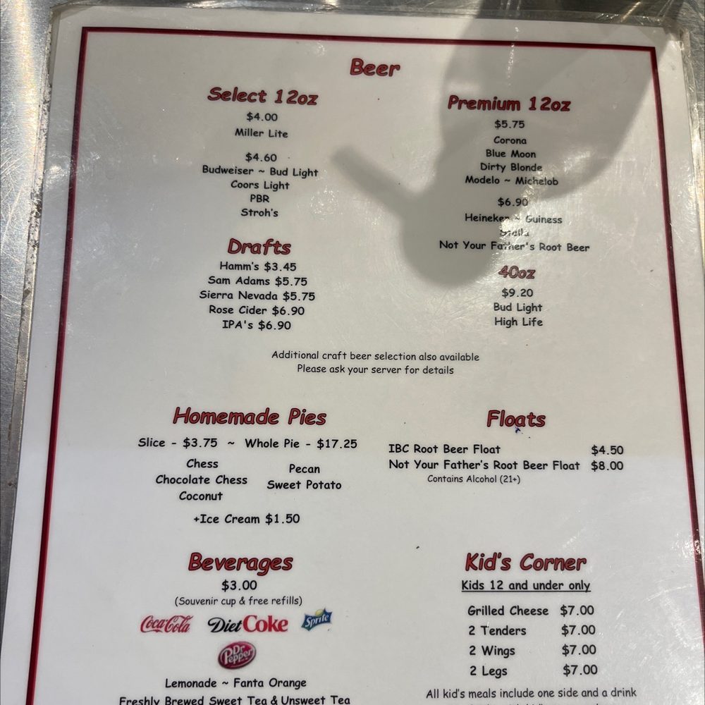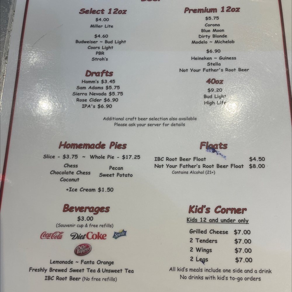 The menu features tantalizing starters like Fried Green Tomatoes and Fried Pickles, accompanied by their creamy ranch dressing. For the main event, choose from an array of delectable plates, including the crispy 3 Piece Dark Plate or the mouthwatering 1/2 Chicken Plate, served with baked beans and coleslaw. Their signature Chicken Sandwich Combo is a must-try, offering juicy chicken thighs layered with tangy pickles and creamy mayo.